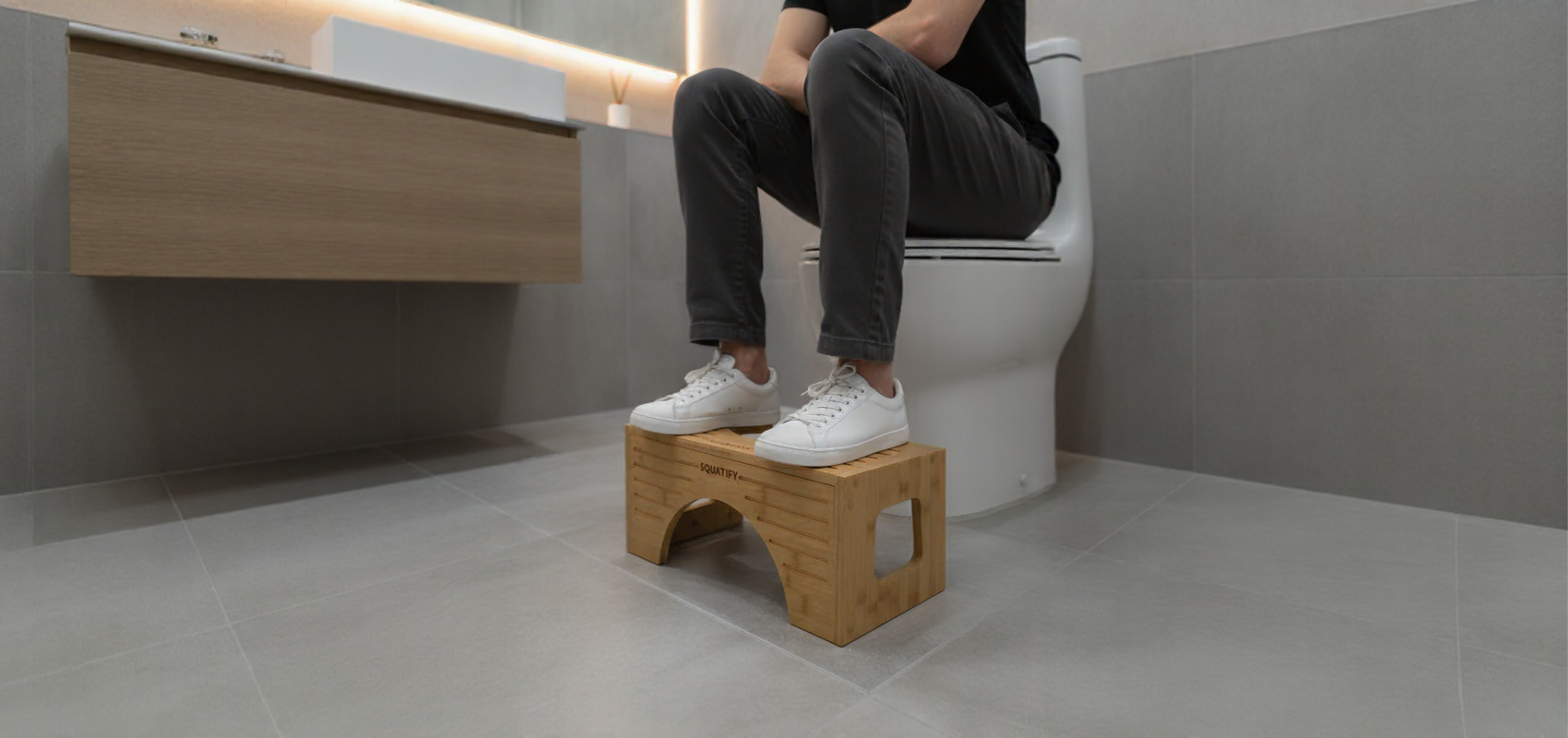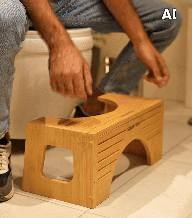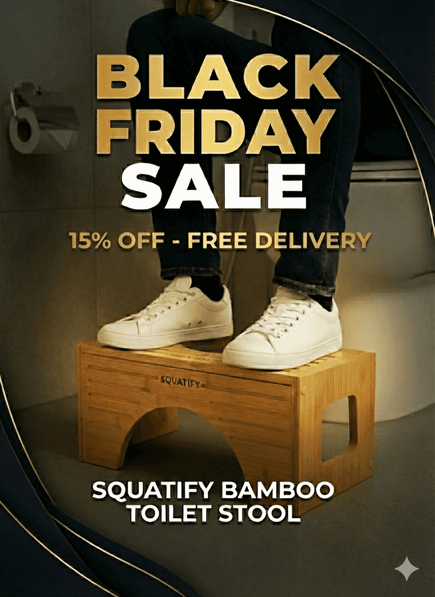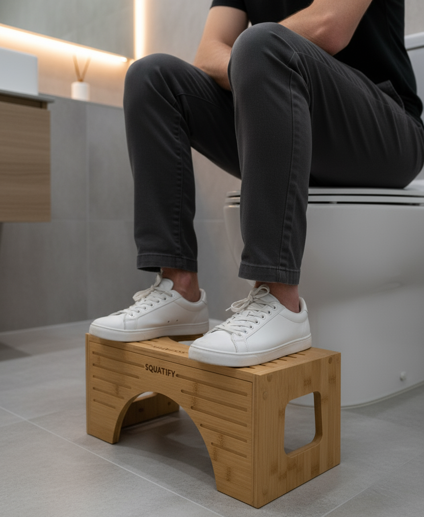 SQUATIFY is a specially designed toilet stool that helps you achieve the natural squatting position while using the toilet. This position aligns your body for easier, healthier, and more effective bowel movements.